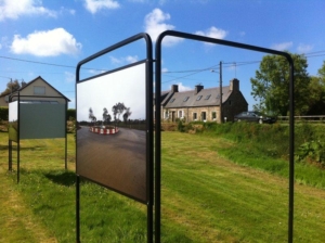 Juraj Lipscher est fasciné par le « paysage de haies » qui organise notre environnement. Cette forme d’un paysage « sous contrôle », qui clôture de manière assez opaque et relativement récente, nombre de parcelles entourant des maisons particulières, est à mettre en écho avec un paysage de champs, de plus en plus vastes, dans lesquels les talus qui constituaient l’essence du paysage breton, ont une forte tendance à disparaître. Contraste saisissant, ponctué de la part du photographe de quelques clins d’œil.